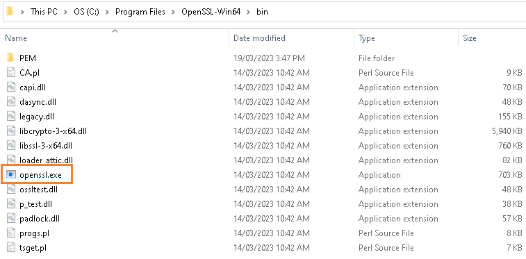 Once the installation process is finish, we can find openssl.exe under program files folder.