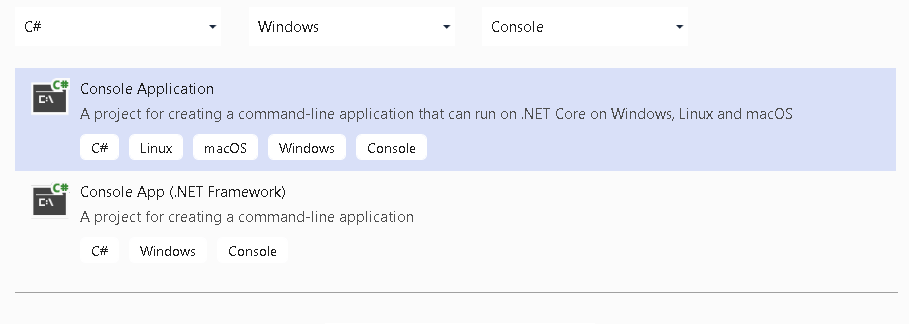 Open your Visual Studio 2019 and select Console Application.