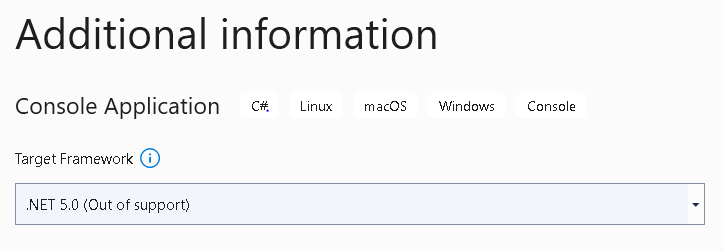 Choose .NET 5.0 as our Target Framework. Then click Create.