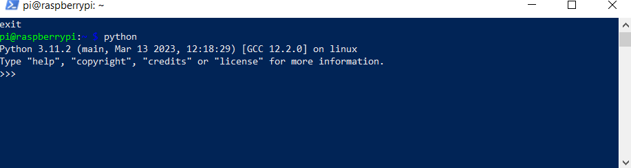 Type exit on the prompt to go back to pi@raspberrypi prompt.